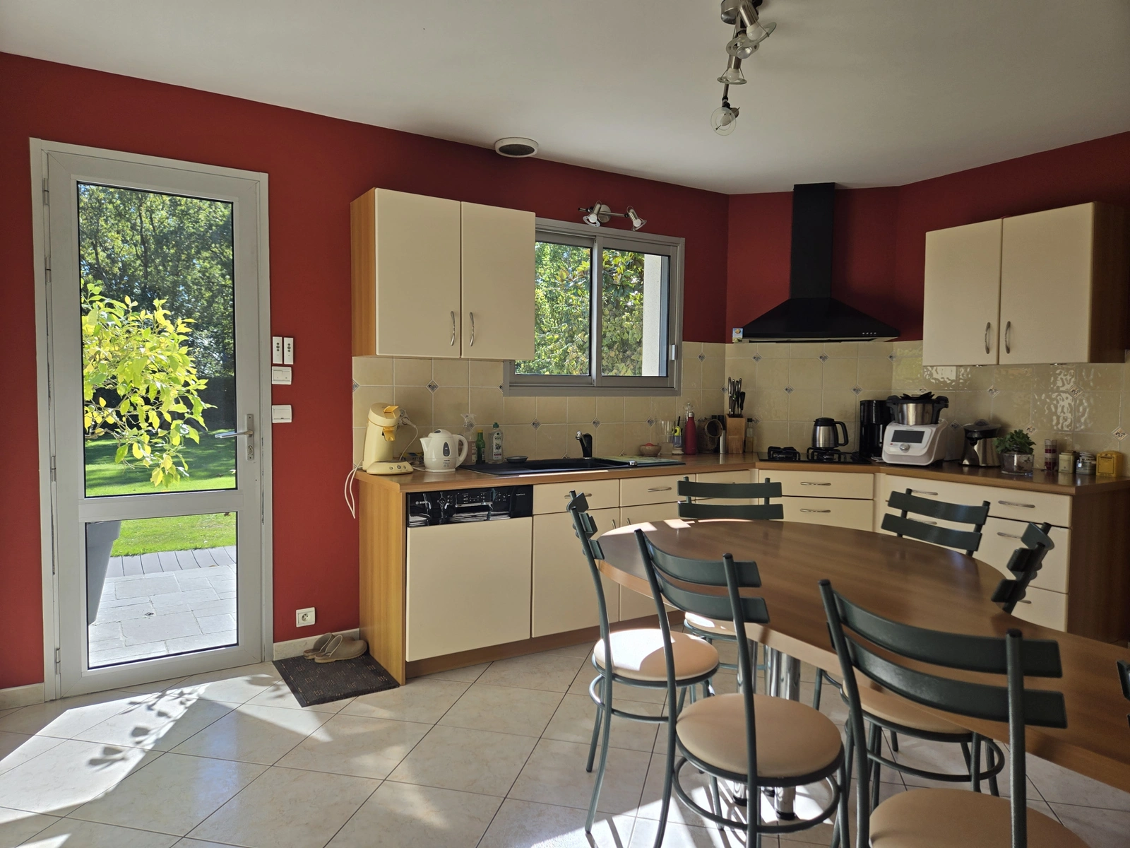 Cuisine indépendante de 14 m2 attenante au séjour, avec une surface permettant l'installation d'un coin repas ou d'équipements de rangement complémentaire à laquelle s'ajoute un cellier de 6m2.