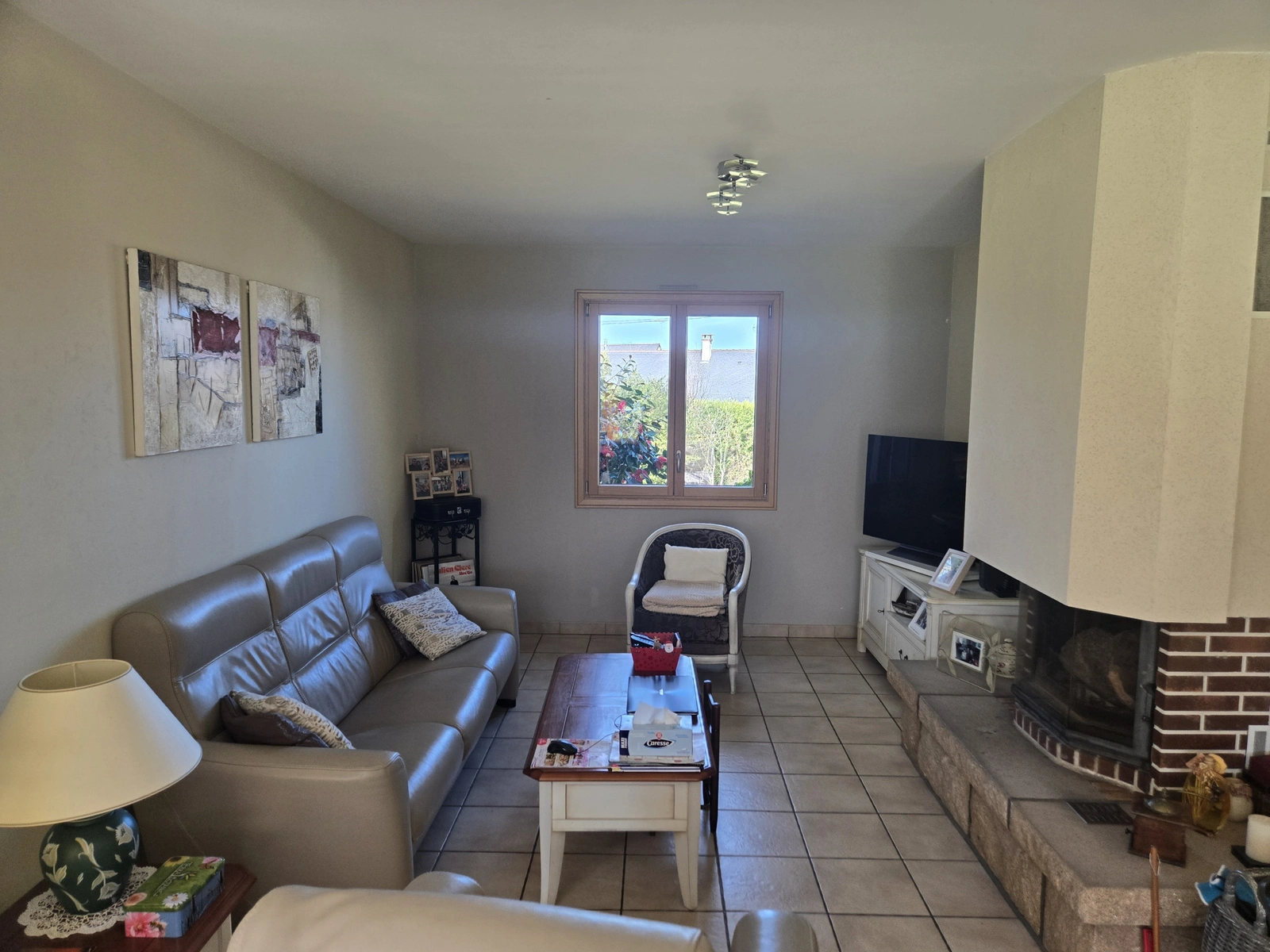 Pièce de vie principale d'environ 52 m2 permettant d'organiser plusieurs zones : salon, espace repas et circulation vers la cuisine et les autres pièces de la maison.